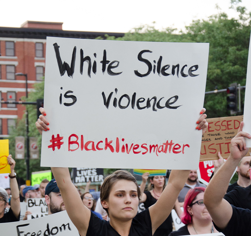 The newest slogan in the protest is: White Silence is Violence.